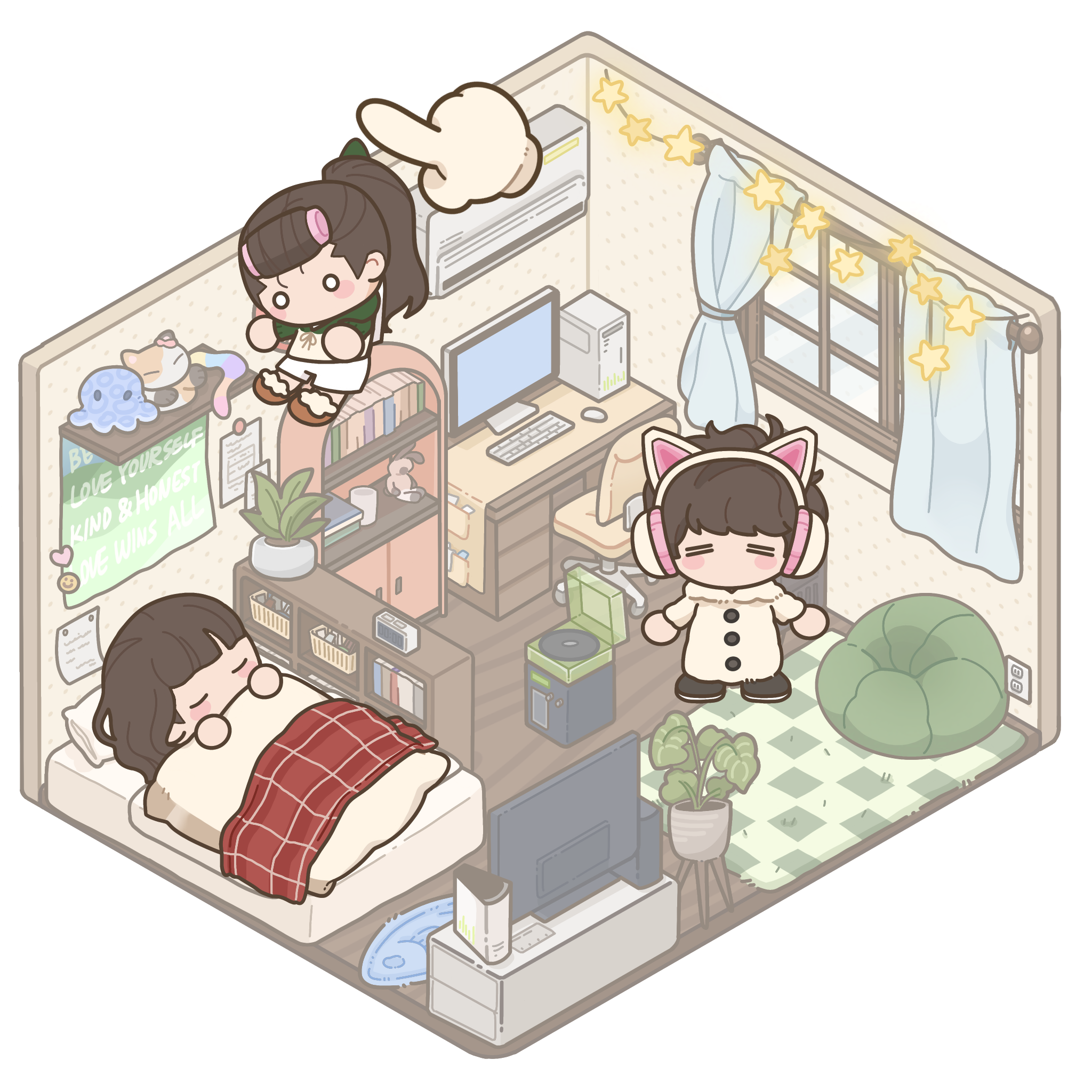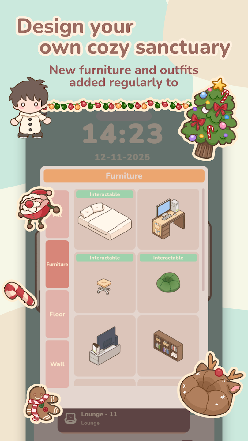 Adorable characters move around your room, bringing a comforting sense of companionship.