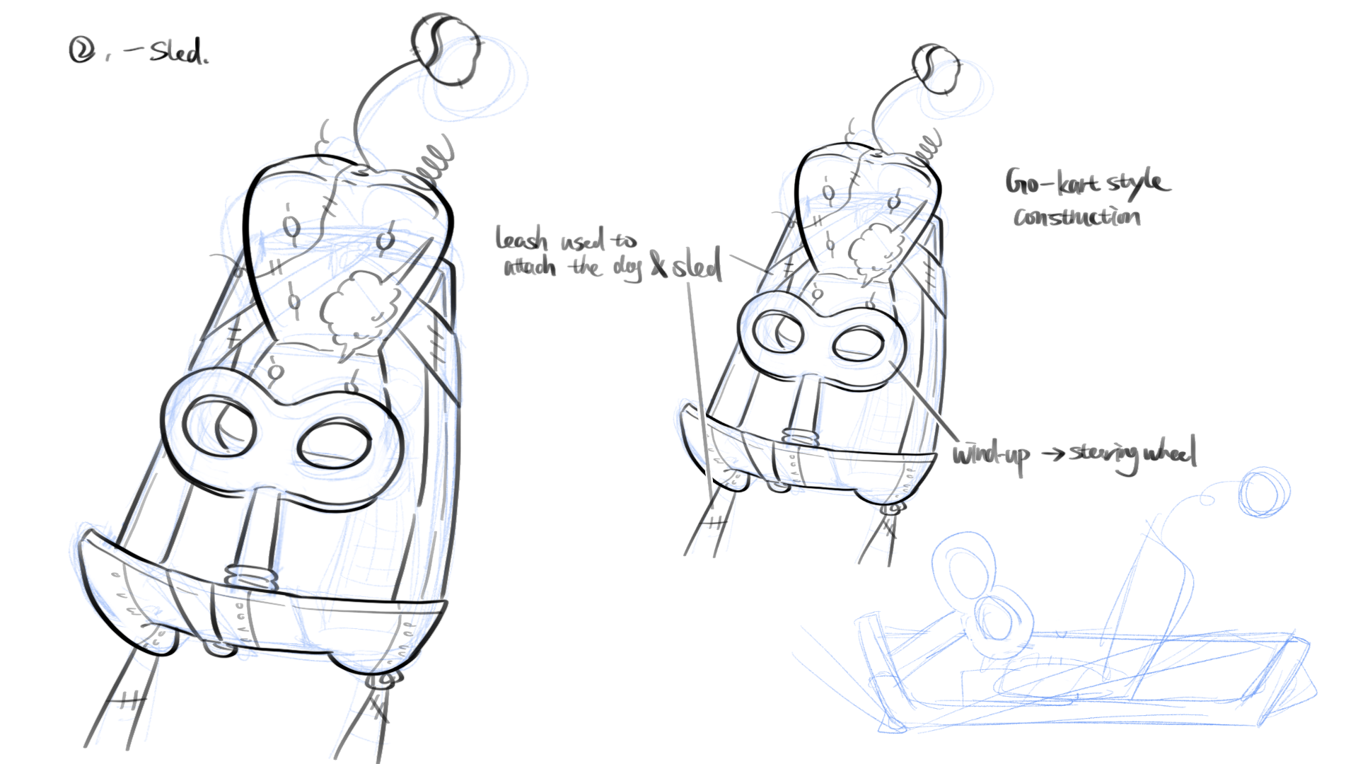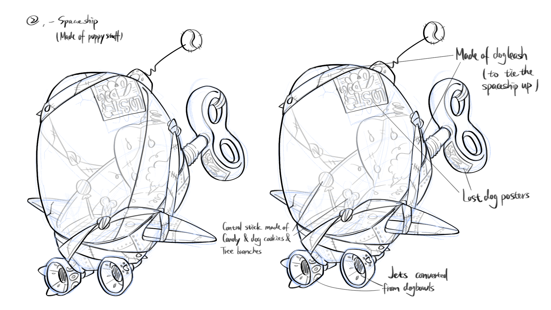 I want the spaceship and other props to be childlike, but at the same time not idle. And I'm reminded of the movie Despicable Me, which featured a lot of strangely shaped transportation vehicles.